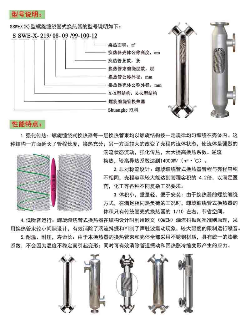 3)換熱效率和冷凝,因而節(jié)能。盡管螺旋導(dǎo)流纏繞管式冷凝器體積小巧,但由于螺旋纏繞曲線,氣態(tài)介質(zhì)在換熱管束中停留時(shí)間長,不用經(jīng)過二次換熱。
